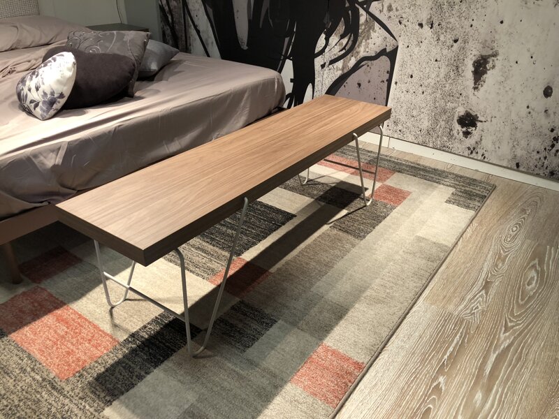 Panca struttura metallo Platino - piano in laminato Noce Ambra