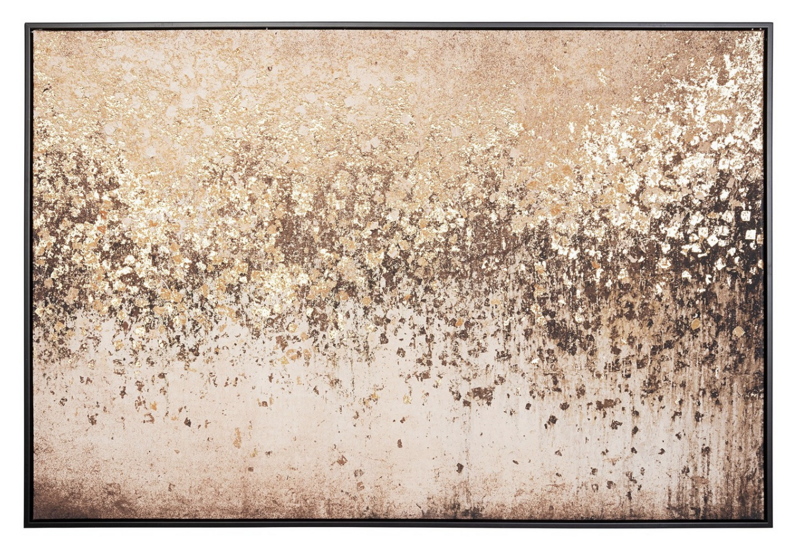 Stampa su tela con applicazioni ad olio e foglia oro.